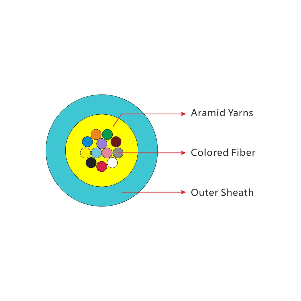 GJFV-Kabel werden hergestellt, indem gleichmäßig Aramidgarne aufgetragen werden, während das Festigkeitselement über 250 μm Fasern, die Fasern mit Aramidgarn verdreht werden, dann fertiggestellt wird.