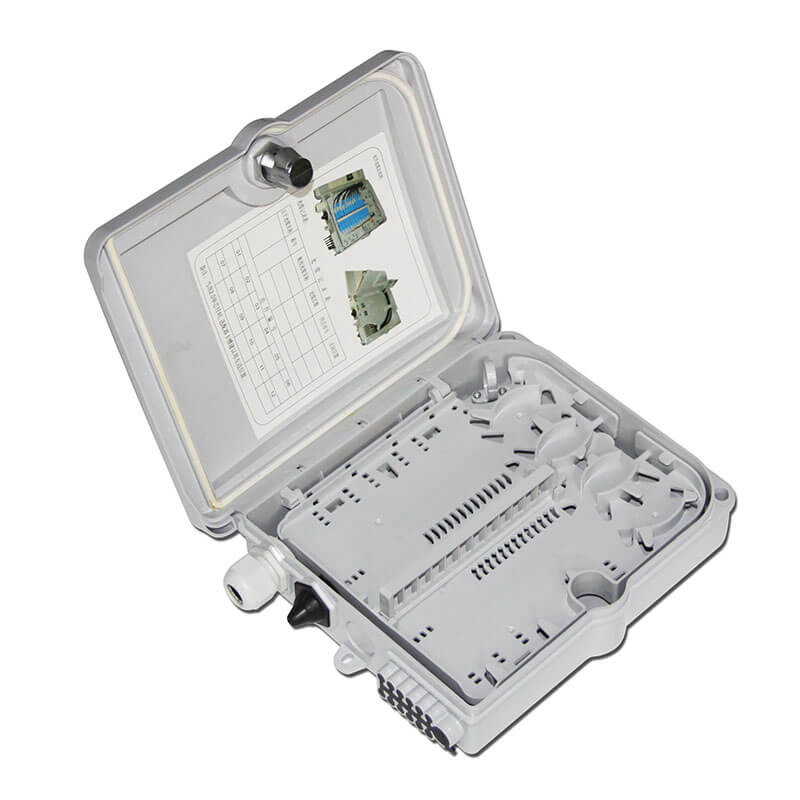 Diese Glasfaserverteilbox wird zum Anschließen von optischem Kabel mit verschiedenen Geräten in einem FTTX-Optischen Zugangsnetzwerk verwendet.kann bis zu 2 Eingangsfaseroptikkabel und 12 FTTH-Ausgangskabelanschlüsse haben, bietet Platz für 12 Fusionen, verfügt über 12 SC-Adapter und arbeitet sowohl im Innen- als auch im Außenbereich,Es wird auf den Splitterpunkt der zweiten Stufe des Glasfasernetzwerks aufgetragen (PLC könnte im Inneren geladen werden)Das Material dieser Box besteht in der Regel aus PC, ABS, SMC, PC+ABS oder SPCC. Das optische Kabel kann nach der Einführung in die Box mit Fusions- oder mechanischer Verbindung verbunden werden.Es ist ein perfekter kostengünstiger Anbieter von Lösungen für die FTTx-Netzwerke.