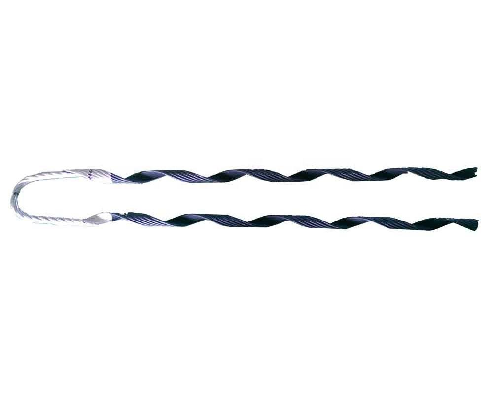 "Preformed Guy Grip" (oder "Preformed Dead-End Grip"), Die Materialien der Sackgasse unterscheiden sich für die übereinstimmenden Leiter, im Allgemeinen eine hochspannungsfähige Aluminiumlegierung für Aluminiumverbundleiter;Aluminiumplattiertes Stahl für ACSR. Durch das Einwickeln der spiralförmigen Stäbe an einem Leiter werden Leitungen am Ende oder in der Mitte der Übertragungsleitungen befestigt.Die Federspannung wird erzeugt und die Reibung wird