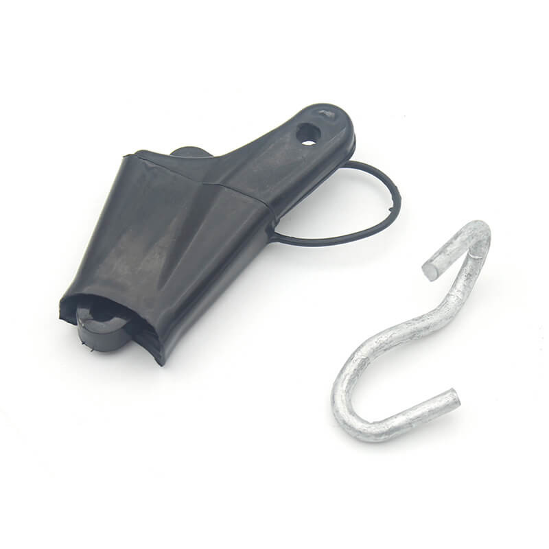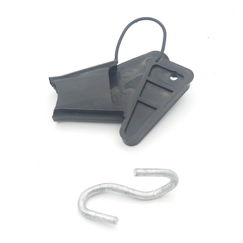 Drop-Wire-Clamp ist, um ein Triplex-Overhead-Eingangskabel an ein Gerät oder Gebäude anzuschließen. weit verbreitet sowohl in Innenräumen als auch im Außenbereich. Ein oder zwei Paare von Telefondraht an Spannklemmen, Antriebshaken und verschiedenen Anbaugruppen.