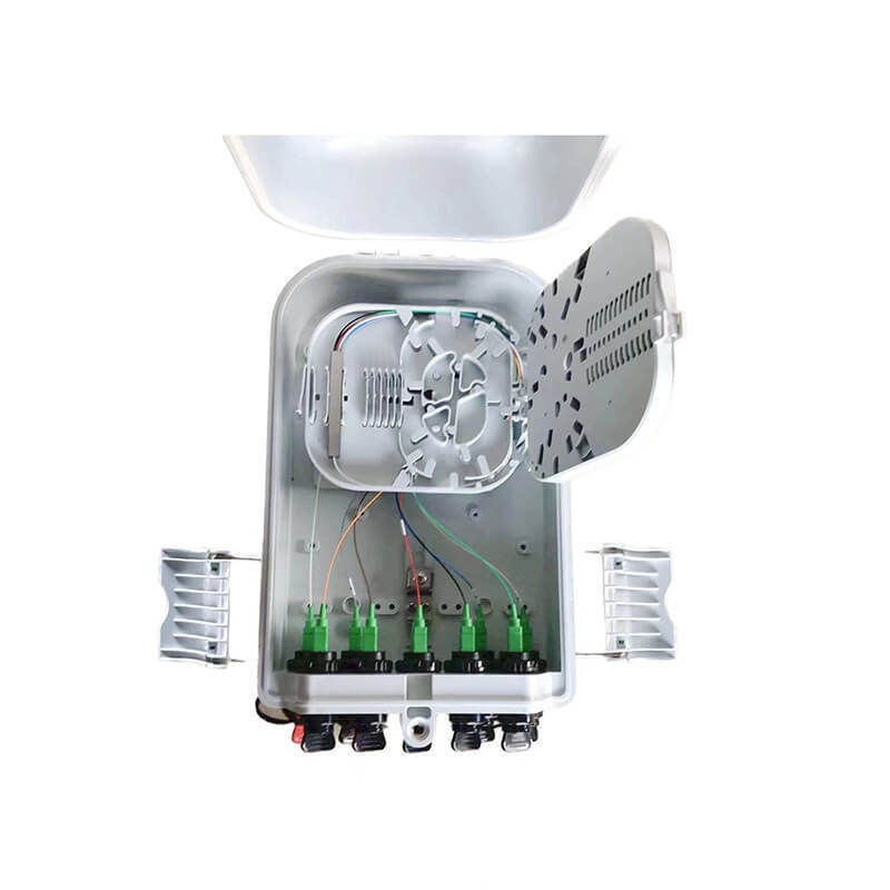 ABS FTTH Weiß/Schwarz 16 Adern Glasfaser-Verteilerkasten für Innen-/Außenbereich. Das Gerät wird als Endpunkt für das Zuleitungskabel verwendet, um im FTTx-Kommunikationsnetzwerksystem mit dem Anschlusskabel verbunden zu werden. Das Spleißen, Aufteilen und Verteilen von Fasern kann in diesem Kasten erfolgen, und gleichzeitig bietet er einen soliden Schutz und ein solides Management für den FTTx-Netzwerkaufbau.